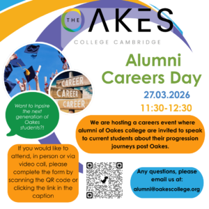 Our event will be hosted at Oakes College on Friday 27th March 2026, between 11:30-12:30. Any alumni wishing to join in can do so in person or online via video call.